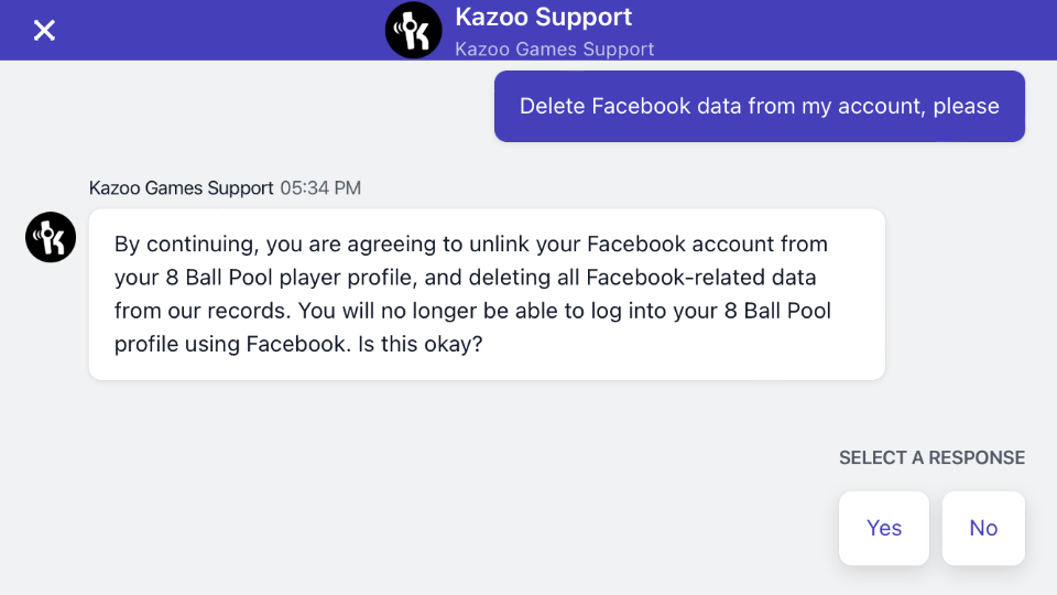 After completing the prompts, all data pulled from your Facebook account will be removed from our servers. To learn more about how Kazoo Games handles your personal information, please explore our Privacy Policy.